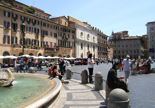 Róma egyik legszebb, és legnépszerűbb terén korábban a város legkedveltebb piaca működött, valamint hajócsatákat is rendeztek - ekkor a teret elárasztották vízzel. A Piazza Navona ovális, aréna-szerű alakja a korábban a téren rendezett játékoknak köszönhető. A téren három szökőkút található, köztük Gianlorenzo Bernini remekműve, a híres Fontana dei Quattro Fiumi (A négy folyó szökőkútja), valamint egyéb templomok, és műemlékek. Hangulatos meginni valamit egy kávézó kinti asztalánál, figyelve a sürgés-forgást. Az éjszakai élet is pezseg itt: sötétedés után zenészek, mutatványosok szórakoztatják az embereket, és az éttermek, kávézók megtelnek emberekkel.
