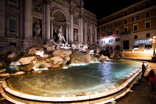 A világ egyik leghíresebb, és legszebb szökőkútjába rengetegen dobnak aprópénzt, mivel a hiedelem szerint, aki pénz dob a kútba, az visszatér Rómába. Ez Róma legnagyobb szökőkútja - 26 méter magas, és 20 méter széles. A barokk szökőkút Nicola Salvi tervei alapján épült, és 1762-re készült el, azóta többször is restaurálták (legutóbb 1998-ban). A pénzérmékből naponta kb. 3000 Euró gyűlik össze, mely összeget a nap végén begyűjtik, bár néhány ötletes tolvaj alkalmanként mágneseket használva próbál lopni a kútból.